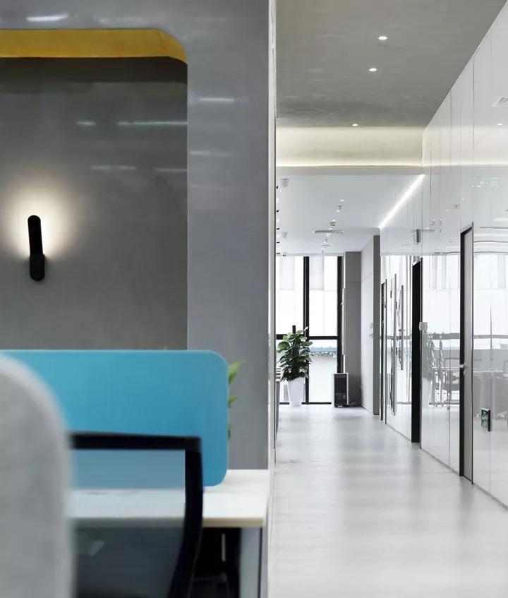 家具軟裝及墻壁顏色,展示青春活力。透著數字化和科技感,所呈現的多元化和創新。這樣的灰度中性色能解決很多材質搭配問題,也能增強立面層次和肌理的對比,使得空間立面充滿質感,讓整個空間透出時尚氣質。