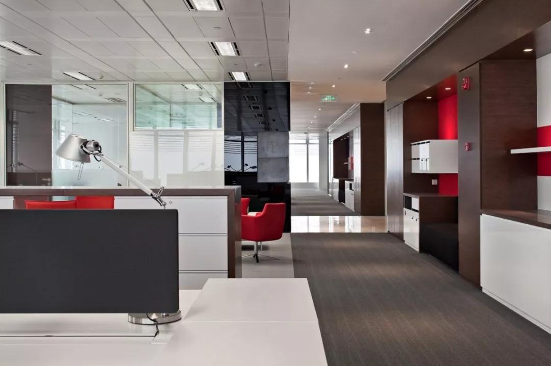 在匯豐銀行辦公室裝修室內(nèi)設(shè)計(jì)項(xiàng)目提案中,深圳裝修公司設(shè)計(jì)團(tuán)體重點(diǎn)突出了匯豐的品牌形象。裝飾公司在色彩運(yùn)用上,以銀行的黑、白、灰為主體基調(diào),精心配以匯豐特有的紅色,并以竹木和細(xì)絨軟包使空間溫暖、親切,但不失專業(yè)和現(xiàn)代的氛圍。
